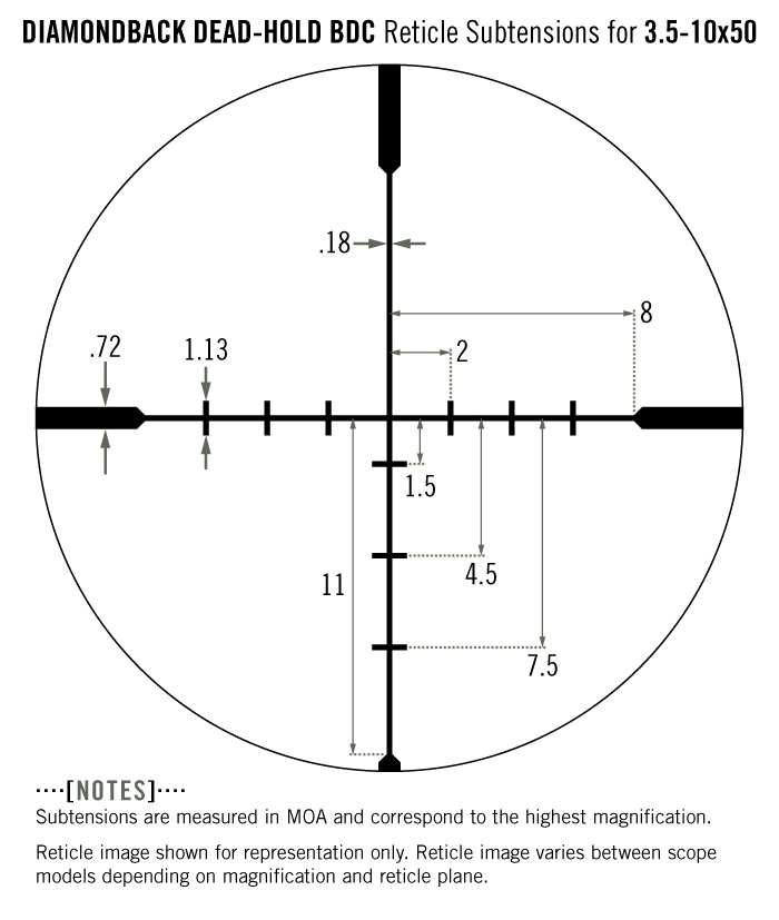 Diamondback® riflescopes completely change the rules when it comes to “you get what you pay for.” The solid one-piece aircraft-grade aluminum alloy construction makes them virtually indestructible and highly resistant to magnum recoil. Argon purging puts waterproof and fog-proof performance on the checklist and the advanced, fully multi-coated optics raise an eyebrow when crystal clear, tack-sharp images appear in the cross-hairs.