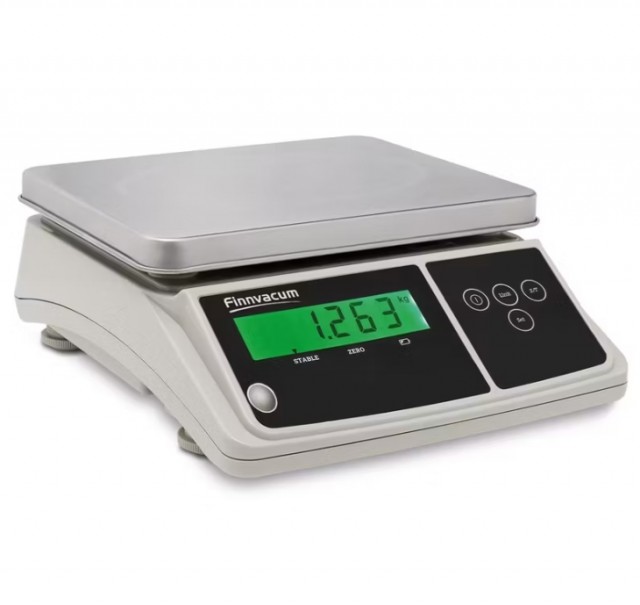 Kompakt og robust krydder- og bordvekt fra Finnvacum med stort LCD-display.