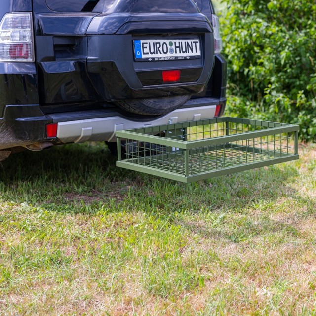 En fremragende egenskap ved vår bakre bagasjebærer er den imponerende lastekapasiteten. Den bakre bagasjebæreren er kompatibel med de fleste EUROHUNT-vilt- og universalbeholdere. Dette gir deg stor fleksibilitet i bruken. Du kan enkelt tilpasse den til dine individuelle behov og transportere forskjellige laster. Dimensjonene på kurven er 890 x 585 x 200 mm (Lengde x Bredde x Høyde). Dette betyr at den gir tilstrekkelig plass til transportgodset ditt uten å virke klumpete.