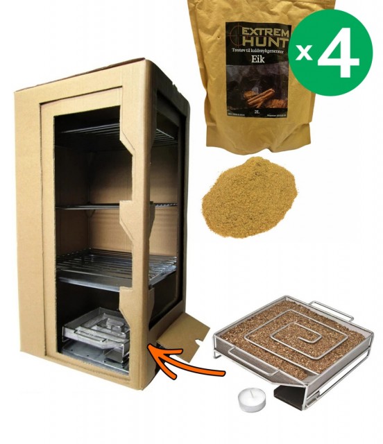 Å starte med kaldrøyking av mat kan være både en tidkrevende og dyr affære, men ikke nå lenger! I denne pakken får du med alt du trenger for å starte med kaldrøyking. Sett opp røykhuset, fyll opp generatoren, tenn på telyset og sett det på plass og vipps, så er du i gang med din første kaldrøyking – enklere blir det ikke!