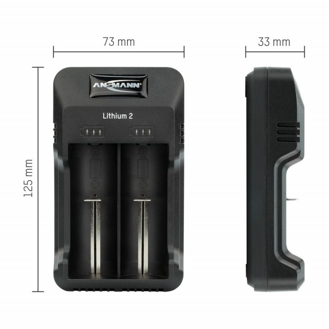 Mange forskjellige størrelser av oppladbare batterier er tilgjengelige, spesielt i litiumion-segmentet. Med Lithium 2-laderen fra ANSMANN har du valgt en universell allrounder med det beste pris-ytelse-forholdet. Med de to ladesporene kan du lade 1-2 Li-Ion oppladbare batterier i størrelsene 26650, 22650, 18650, 18500, 17670, 16340, 14500 osv. eller 1-2 NiMH AA / AAA oppladbare batterier uavhengig av hverandre. Enheten oppdager batteriet som er satt inn helt automatisk og uten kjedelige justeringer. Ladeprosessen starter umiddelbart, når cellene er satt inn med riktig polaritet.