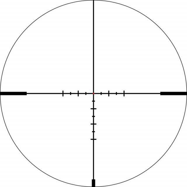 Hash-merket trådkors med MOA-baserte subtensjonslinjer for korrigering av avstand, holdover og vindretning.