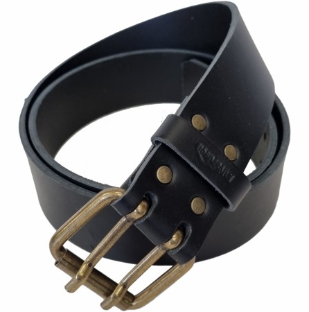 Kraftig lærbelte. Dobbel spenne. Et belte med ekte skinnfølelse som bare blir flottere med tiden.