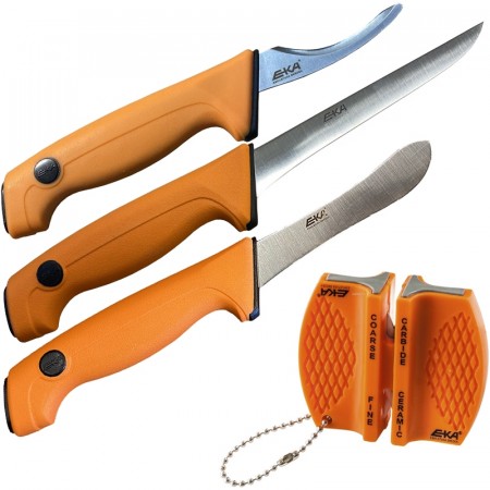 Eka bukåpnerkniv gjør utvomming og legging av flåsnitt til en lek. Eka Butcher Pro er slaktekniver laget for oppstykking, slakting og kjøttbearbeiding.