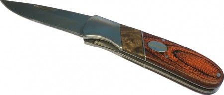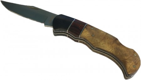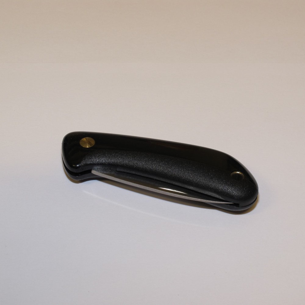 Foldekniv med låsbart blad, bukåpner og sag. Blad 9cm. Sammenfoldet 11,5cm.