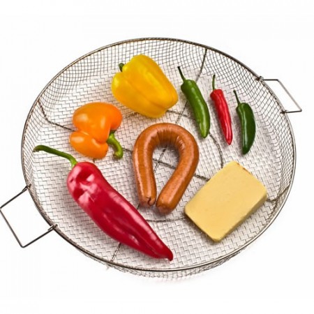 Forhindrer at maten faller gjennom grillen på BBQ Smoker. -Lar røyk, damp og varme strømme jevnt rundt i maten. -Perfekt til fisk, reker, grønnsaker og forretter -Kan brukes som en praktisk metode for å løfte større kjøttstykker inn og ut av røykeovnen