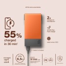 Lader telefonen din til over 55 % på bare 30 minutter*. Med opptil 22,5 W ladehastighet kan den lade to enheter samtidig og den støtter PD 3.0, QC 3.0, PPS, SCP, FCP, AFC hurtiglading. Støtter både USB-A- og USB-C-utgang for maksimal bekvemmelighet.