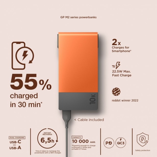 Med en M2 Powerbank lader du telefonen din til over 55% på bare 30 minutter. En fulladet M2 Powerbank kan lade mobilen din opptil to ganger. Med seks ulike sikkerhetsfunksjoner og et ytre av høy kvalitet er dette en powerbank som du vil ha nytte av i mange år fremover.