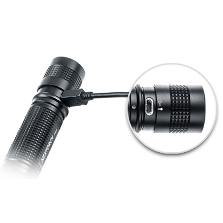 - Kompatibel med ett 18650 Li-ion-batteri eller to CR123A-batterier