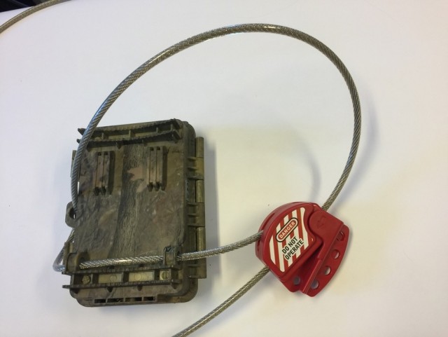 Til viltkamera kan låsekabelen benyttes sammen med de låsbare sikkerhetsboksene vi selger, eller kun med kameraet på enkelte modeller som har passende hull for dette (står oppført i kameraets spesifikasjon)