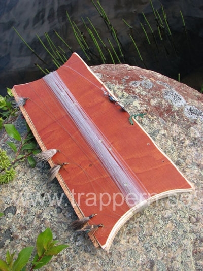 Trapperns utterlina 10 är hantverksmässigt helsvensk rakt igenom med egenhändigt bundna högkvalitets flugor. Den kallas också kanske ibland av de mera korrekta typerna för "fluglina" kort och gott. Men men, det är samma sak. Här är det inte frågan om en frigolitring som bara håller den första sommaren, utan om en rejäl bräda av "marinplyfa" (formplywood eller fenolfilmad plywood) med korkkant för flugornas del!