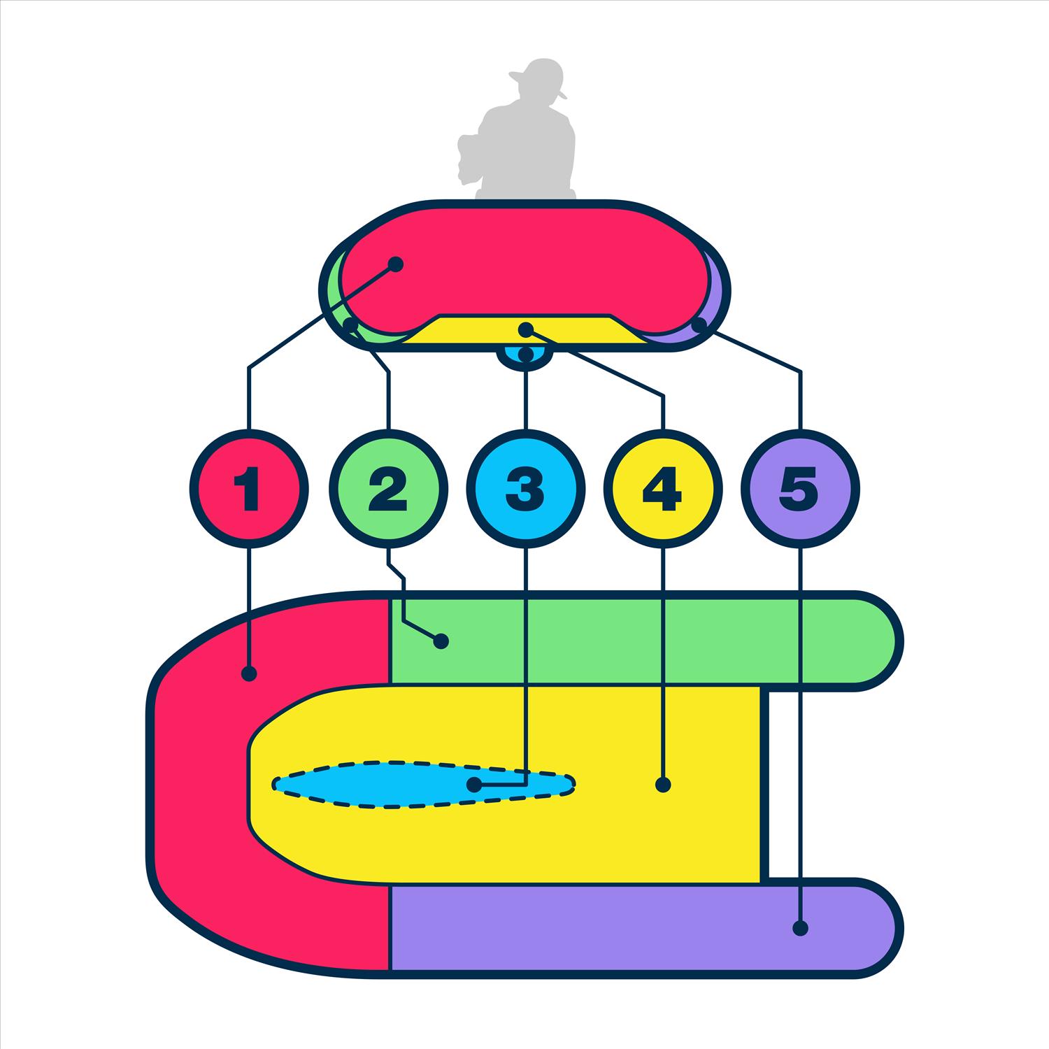 5 separate, uavhengige sikkerhetsluftkamre for ekstra beskyttelse: Forstavn (foran), styrbord side (høyre side), utvendig kjøl, *avtakbart oppblåsbart dørk og babord side (venstre side). Gir ekstra sikkerhet og trygghet. *Det oppblåsbare Drop Stitch-gulvet er et valgfritt alternativ til plastgulvplanker.