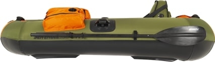 Den perfekte "ta med og gå"-pakken! Med et grønt oppblåsbart Deluxe-sete, åresett, fotpumpe, reparasjonssett og PF7-ryggsekk.