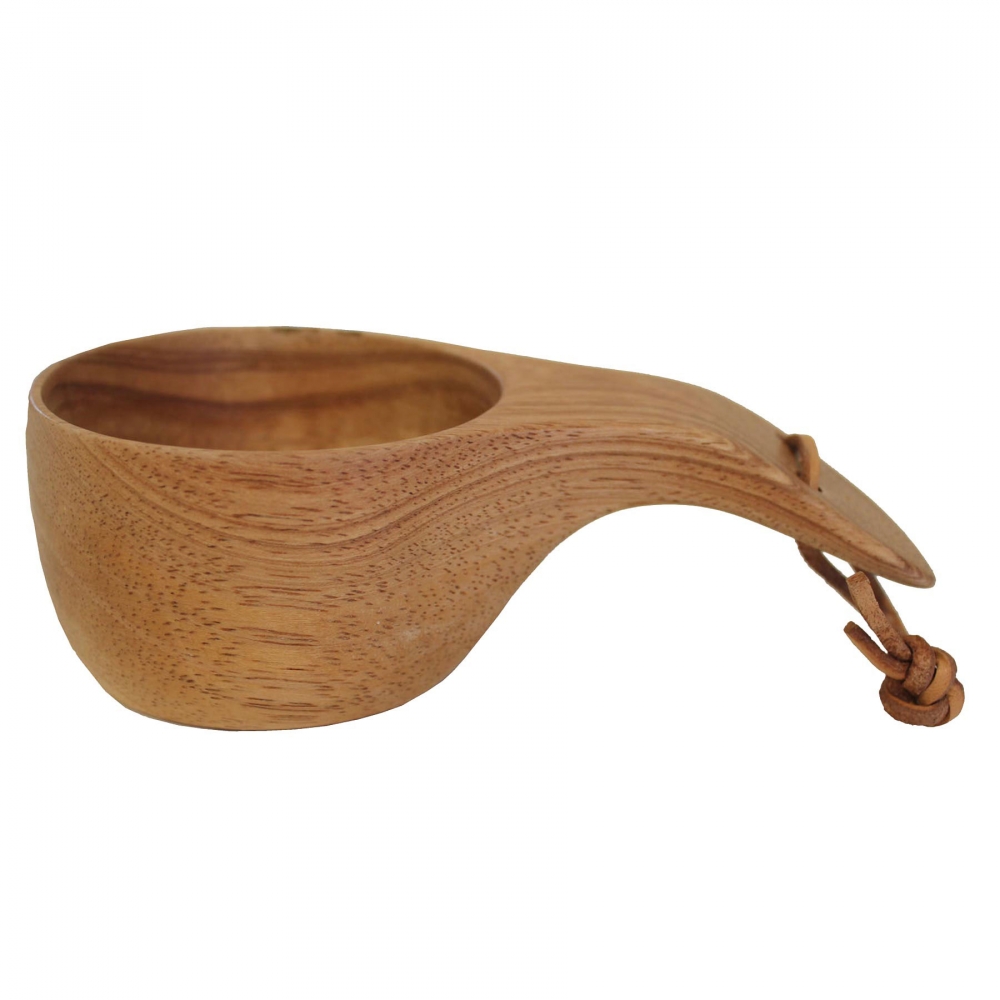 En vakker og praktisk trekopp i skandinavisk design, utstyrt med en skinnsnor for enkelt oppheng. En trofast følgesvenn i ryggsekken eller beltet under jakt, fottur eller ekskursjon.