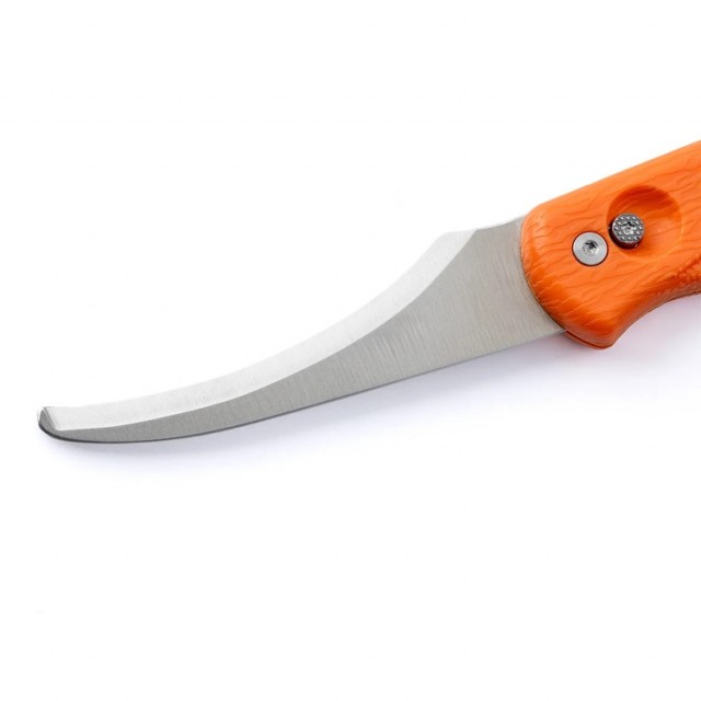 Beskrivelse av EKA® DUO Orange Dette lille vidunderet er et av EKA®s kjennemerker, og er ekstremt nyttig og allsidig. Den er praktisk, trygg og sylskarp og kan brukes på kjøkkenet, på fisketuren eller i seilbåten. Knivbladets form er optimalisert for filetering. Den omvendte tarmåpneren gjør at du kan åpne tarmen og utføre glidelåsprosessen på en smidig og sikker måte. Dette er et velprøvd og utprøvd design og konsept, og det ergonomisk utformede håndtaket gir et eksepsjonelt godt grep og en god følelse i hånden. Skift raskt mellom fileterings- og sløyebladene med en enkel, flytende bevegelse når låseknappen trykkes inn. Laget av det anerkjente svenske kvalitetsstålet 12C27 og herdet til 57-59 HRC, noe som bidrar til å gi en holdbar egg og opprettholde skarpheten. Den har også et øye for å feste en snor, slik at duoen ligger trygt i hånden mens du bruker den. Teknisk beskrivelse TOTAL LENGDE 11,65 tommer | 296 mm Knivbladets lengde 5,31 tommer | 135 mm SKJÆRBLADETS LENGDE 3,66 tommer | 93 mm TYKKELSE BLAD 0,06 tommer | 1,7 mm VEKT 143 g (5,04 oz) STÅL Alleima 12C27 (HRC 57-59) BLADETS FINISH Polert BLADETS FORM (SKINNING) Spiss BLADETS FORM (SKJÆRING) Konkav SLIPPEFORM (SKINNING) Flatslipt BLADETS SLIPNING (GUTTING) Scandi grind VINKEL PÅ BLADET (SKINNING) Ca. 20 grader per side VINKEL PÅ BLADET (GUTTING) Ca. 7 grader per side HÅNDTAK Proflex™ HYLSE Cordura FUNKSJONER Hurtigbryter Translated with DeepL.com (free version)