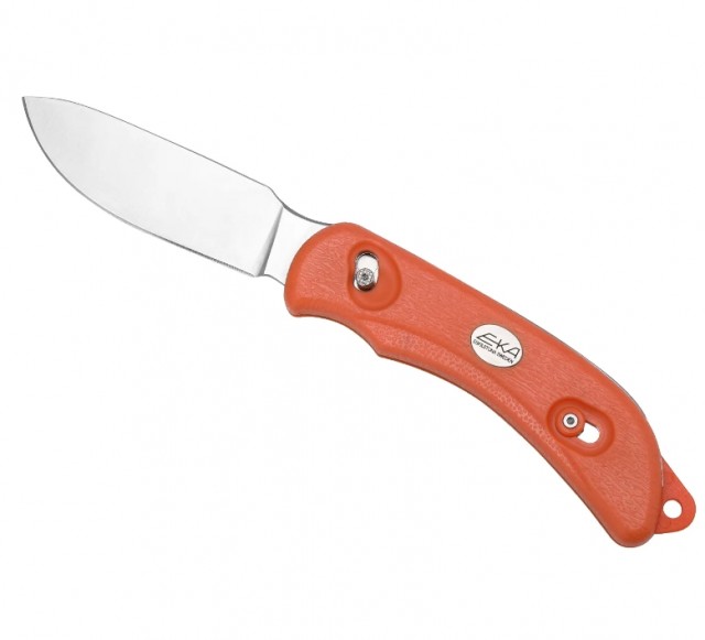 Den nye EKA® SwedBlade G6 bruker et velprøvd og testet svingbart bladdesign som gjør det mulig å bruke to forskjellige knivblader i én og samme kniv. Det er mange flotte funksjoner som bidrar til å gjøre EKA® SwedBlade G6 til den ultimate kniven. Den har et veldesignet, ergonomisk formet håndtak. Knivbladene er laget i ett stykke av det svenske stålet 12C27, noe som bidrar til lang holdbarhet og slitesterke egger som holder seg skarpe. Du kan raskt bytte mellom flåbladet og sløyebladet med en enkel, flytende bevegelse når låseknappen trykkes inn. Den har også et festeøye for en snor, slik at EKA® G6 ligger trygt i hånden mens du bruker den.