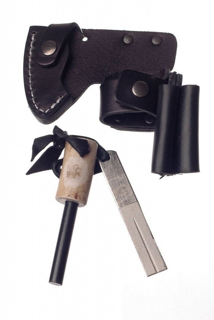 Om du ikke vil ha øksen i ryggsekken, så kan du bære den i det medfølgende hylsteret. Det er konstruert slik at man kan slippe øksen ned i hylsteret, slik som du slipper en kniv ned i sliren.