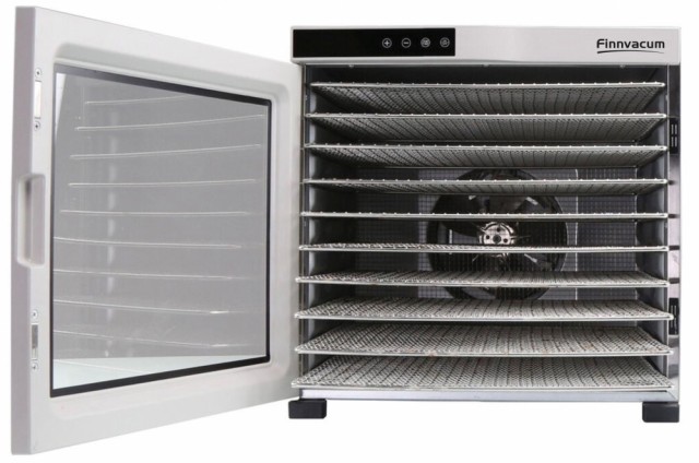 Forvandle vanlig mat til bærekraftige og smakfulle snacks med Finnvacums tørkeovner. Enten det er tørket frukt, tørket kjøtt eller urter som skal tilberedes, er mulighetene uendelige. Den stillegående, bakmonterte viften tørker maten svært effektivt ved å fordele varmen jevnt, slik at du ikke trenger å rotere maten.