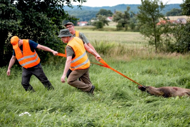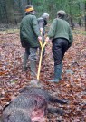 Med dette robuste hjelpemiddelet er det enklere å hente ut villsvin, kronhjort eller dådyr. Det er bare å hengsle den 10 mm sterke kroken i høylegert stål på underkjeven. På grunn av de tre trekkløkkene er det mye enklere å hente ut de tyngste hjortene alene, sammen med en annen jeger eller med to andre jegere. Når du berger alene, kan den fremre trekkløkken brukes som nakkestropp.