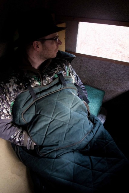 En varm utkikkspose for kalde vinternetter med ekstra høye skulderpartier og skulderstropper, og glidelås i siden for enkel tilgang.