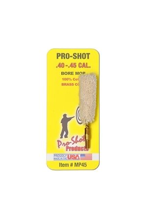100% Cotton Bore mop made with a brass core. They are made of the highest quality construction possible. Mops can be used for quick cleaning and bore lubrication. Mops are especially excellent when using oil for bore lubrication because they create foaming action that helps in the lubrication process.