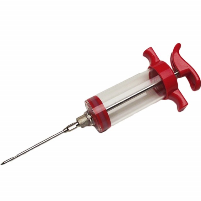 Bruk denne overdimensjonerte nålen til å injisere marinader, smeltet smør og andre flytende smakstilsetninger dypt i kjøttet. Holder selv de tørreste kjøtttypene saftige under matlaging og røyking og setter smak i hjertet av kjøttet! Den 6.4 cm lange nålen i rustfritt stål skrues løs enkel rengjøring, og to-hulls designet hindrer tetting.