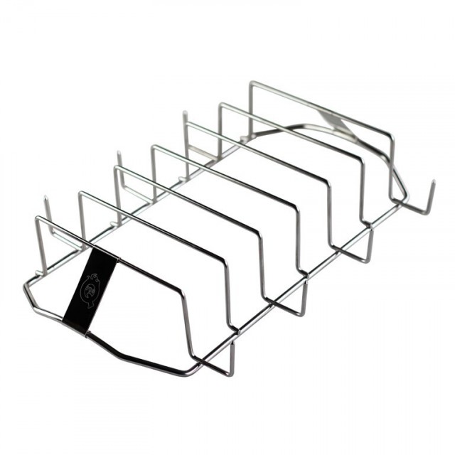 ProQ Smoker Rib Rack er et stativ i forkrommet stål som tredobler tilberedningskapasiteten slik at røyk, damp og varme trenger jevnt inn i maten. Passer til alle røykeapparater av typen ProQ, Brinkmann, Cook 'N' Ca'jun og Smoke 'N' Grill. Kan også brukes på de fleste griller. Rustfritt stål. Tåler oppvaskmaskin