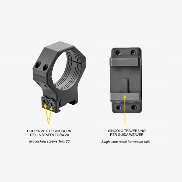 LWR-ringene i lettmetall er laget av solid materiale i alle deler, og er svært sterke og stabile. Utstyrt med en integrert rekylstopp og to låseskruer Torx 20.