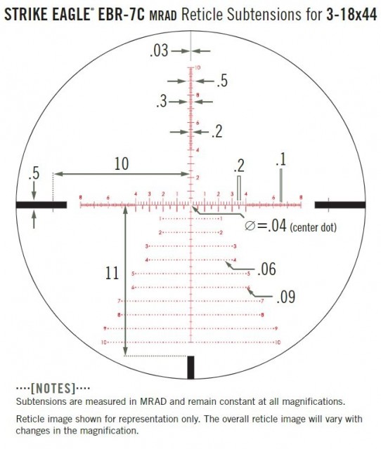 EBR-7C retikkelet er designet for å maksimere evnen til langdistanseskyting og avstandsbedømmelse, og kan brukes til effektiv bestemmelse av avstander, holdovers, vindretningskorreksjoner og føring på bevegelige mål. Ultrapresis laseretsing på glassretikkelet sikrer at spesifikasjonene holder seg innenfor de tettest mulige toleransene. Det fine senterkorset på EBR-7C retikkelet er nøye utvalgt for å gi optimal balanse mellom presisjonssikting og synlighet i svakt lys. Inkluderer referansepunkter for windage på drop-linjene.