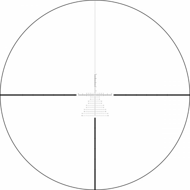 Retikkel i første fokusplan: Skalaen på trådkorset forblir proporsjonal med det zoomede bildet. Konstante subtensions gir nøyaktig holdover og avstand ved alle forstørrelser.