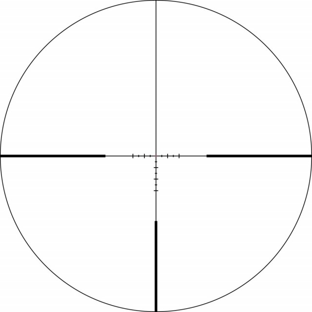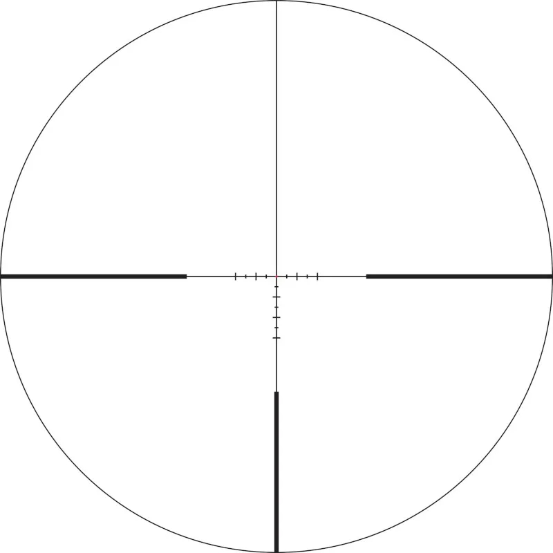 Hash-merket trådkors med MOA-baserte subtensjonslinjer for korrigering av avstand, holdover og vindretning.