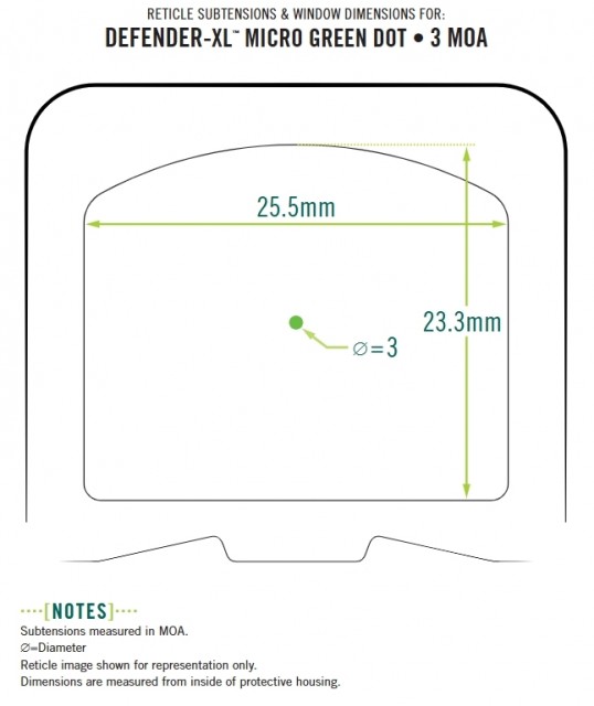 Daylight bright, illuminated center dot aids in faster center-point acquisition in bright daylight conditions. |