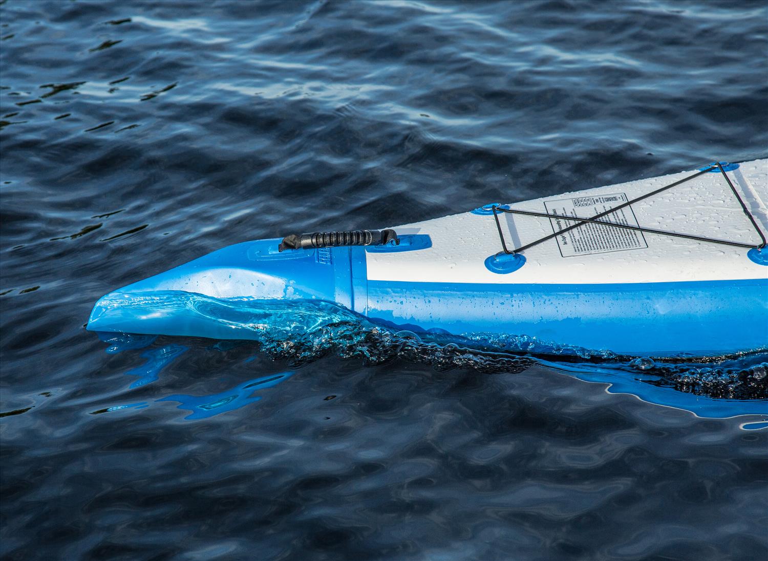 Ny og forbedret, sylskarp, bølgeskjærende, strømskjærende og vindskjærende NeedleNose™-baug som avleder vannstrømmen ytterligere, reduserer luftmotstanden og skjærer lett gjennom det meste! Dermed kan du overvinne de tradisjonelle problemene med deplacementskrog og varierende miljøforhold. Denne designen gjør den til verdens best sporende iSUP og gjør det mye enklere og mer effektivt å padle lange distanser.