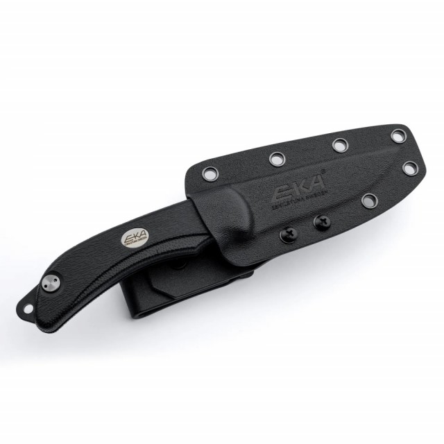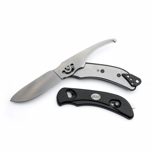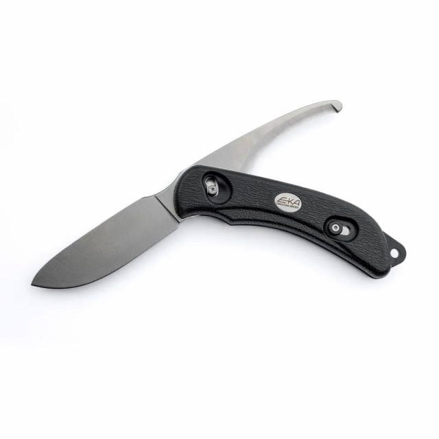 Den nye EKA® SwedBlade G6 bruker et velprøvd og testet svingbart bladdesign som gjør det mulig å bruke to forskjellige knivblader i én og samme kniv. Det er mange flotte funksjoner som bidrar til å gjøre EKA® SwedBlade G6 til den ultimate kniven. Den har et veldesignet, ergonomisk formet håndtak. Knivbladene er laget i ett stykke av det svenske stålet 12C27, noe som bidrar til lang holdbarhet og slitesterke egger som holder seg skarpe. Du kan raskt bytte mellom flåbladet og sløyebladet med en enkel, flytende bevegelse når låseknappen trykkes inn. Den har også et festeøye for en snor, slik at EKA® G6 ligger trygt i hånden mens du bruker den.
